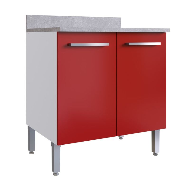 Mueble de Cocina Modular Orange para Microondas con Cajonera 140cm Blanco/Rojo