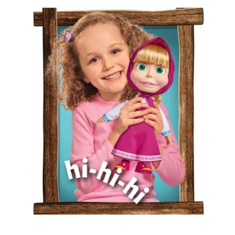 Masha es una chica curiosa y enérgica con cabello corto y rubio y grandes ojos verdes. Lleva una blusa blanca distintiva, un vestido rosa y una bufanda rosa. La muñeca tiene un cuerpo de tela suave y un pelo corto y suave, lo que la hace perfecta para abrazarla. Se ve muy hermosa y refleja fielmente a la heroína de la serie. Gracias a la muñeca, un niño puede ser transportado al maravilloso mundo de la serie, representar sus escenas favoritas y crear aventuras nuevas y únicas para una niña traviesa.