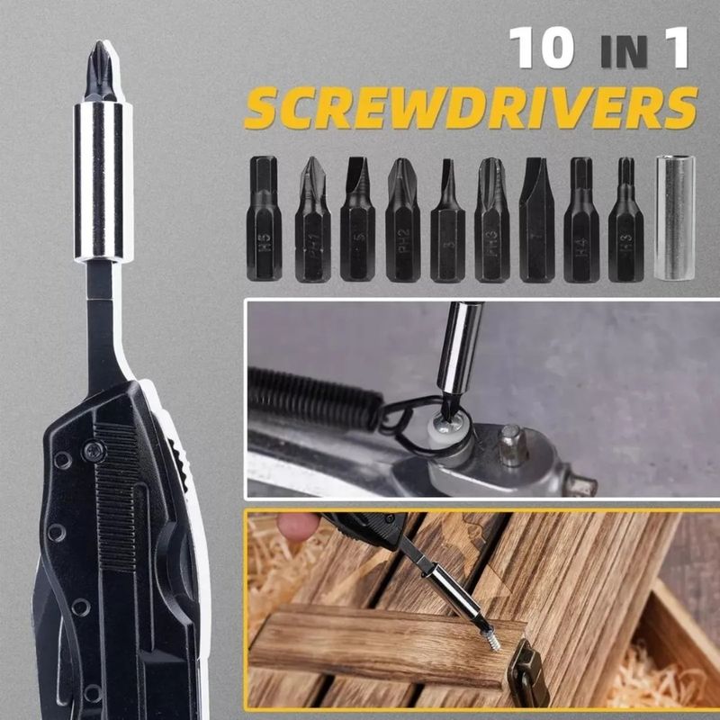 Set de destornillador completo: 9 puntas intercambiables con adaptador magnético para mayor versatilidad.