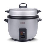 Capacidad: 2.2 litros, lo que equivale a aproximadamente 9 a 12 tazas de arroz cocido. Es ideal para familias grandes o para preparar comidas para varias personas. Potencia: 900 Watts, lo que asegura una cocción rápida y uniforme. Funciones: Cocción de arroz: La función principal, con un sistema de cocción a vapor que garantiza un arroz graneado y perfecto. Función "Mantener caliente": Una vez que el arroz está listo, la olla cambia automáticamente a esta función para mantener la temperatura ideal sin que se reseque o se queme. La temperatura de mantenimiento es de 60°C - 80°C. Diseño y Materiales: Exterior: Fabricado en acero inoxidable, lo que le da un aspecto moderno y duradero. Tapa: De vidrio templado, lo que permite ver el proceso de cocción sin necesidad de levantarla. Incluye un difusor de vapor para liberar el exceso de presión. Olla interior: Recipiente antiadherente removible, lo que facilita la limpieza y evita que el arroz se pegue. Seguridad y Comodidad: Apagado automático: El sistema se apaga una vez que el arroz está cocido, pasando a la función de "mantener caliente". Base antideslizante: Proporciona estabilidad y seguridad al usar el electrodoméstico en cualquier superficie. Botón de un solo toque: Su manejo es simple e intuitivo. Luz piloto/indicadora: Una luz que indica cuándo la olla está en funcionamiento y cuándo ha cambiado a la función de "mantener caliente". Accesorios incluidos: Generalmente viene con una vaporera para cocinar al vapor otros alimentos (como vegetales, pescados, etc.) al mismo tiempo que el arroz. También incluye un vaso medidor y una cuchara para arroz.