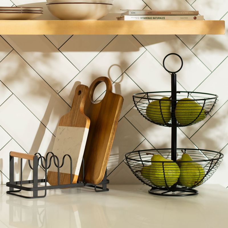 Organizador de metal electro pintado y madera bambú para tapas y tablas.