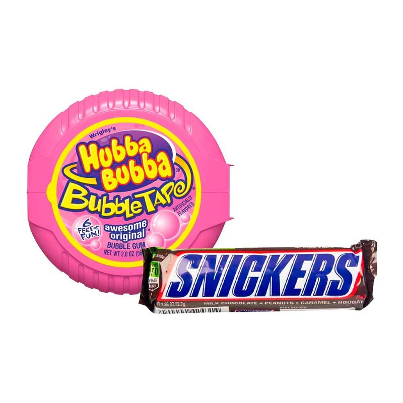 Pack Chocolate SNICKERS Barra 1.86Oz + Goma de Mascar WRIGLEY'S Hubba Bubba 56.7g