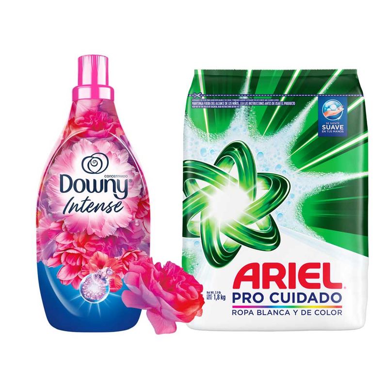 Pack Detergente en Polvo ARIEL Pro Cuidado Bolsa 1.8kg + Suavizante DOWNY Floral Botella 1.4L