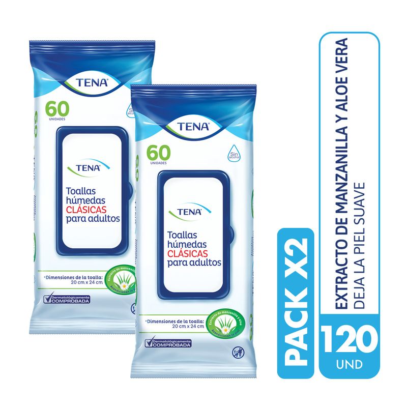 Pack Toallas Húmedas para adulto TENA Clásicas x 120un
