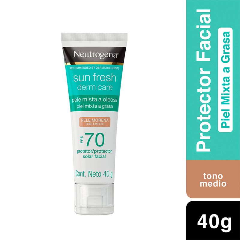 Neutrogena Sun Fresh™ Derm Care Facial, protector solar facial tono medio FPS 70 tiene una textura ligera y seca que no se derrite.