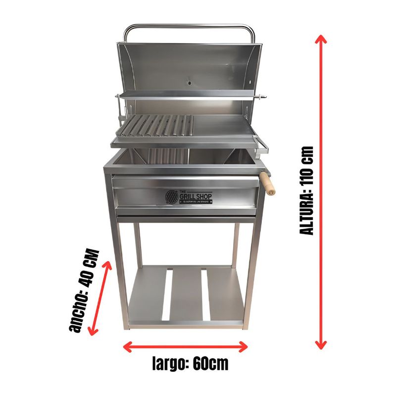 Parrilla Mediana Con Tapa Full Acero Inoxidable Grill Shop