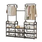 Tiene en total 13 espacios para organizar las cosas, en la parte superior 3 espacios para colgar la ropa, debajo de cada uno una base para colocar cosas, 10 espacios para colocar ropa, zapatos, cajas, etc. Estructura de acero inoxidable, codos de plástico lo que lo hacen muy fácil de armar y para los diferentes espacios tela súper resistente.