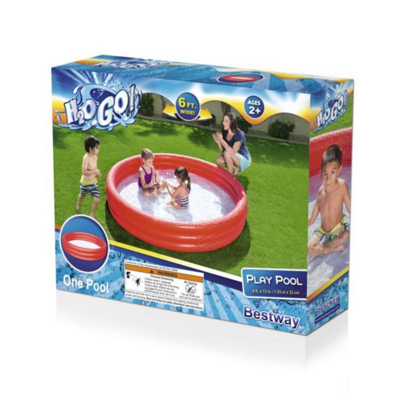 Marca: Bestway. Medidas producto inflado: 183 x 183 x 33 cm. Peso: 1.412 kg. Material: Vinilo. Capacidad: 480 Litros. Color: Multicolor. Edad recomendada: Más de 2 años. Características: Diseñada para que los niños correteen y disfruten fuera de casa. Esta piscina de juegos tine 3 anillos del mismo tamaño y unas dimensiones ideales para que los más pequeños se pasen el día jugando. Incluye: Un parche de reparación. Medidas de la caja: 7 x 30 x 24 cm