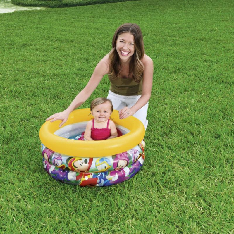 Marca: Bestway. Medidas producto inflado: 70 x 70 x 30 cm. Peso: 0.384 kg. Material: PVC. Color: Multicolor. Edad Recomendada: 2 años a más. Capacidad: 38 Litros. Características: Cuenta con válvulas de seguridad y 3 anillos iguales. Incluye: Un parche de reparación. Medidas de la caja: 4 x 19.8 x 19.8 cm.