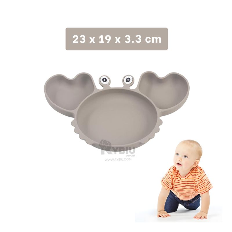 Obtén el plato silicona en forma de cangrejo de color plomo para bebé. Contiene ventosa evita que tu bebé derrame los alimentos, ideal para mantener en orden y limpio el piso de tu hogar sin señales que haya hecho travesuras tu bebé. El diseño del plato personalizado incentiva y motiva a tu bebé a procesar sus alimentos con diversión, además es portátil y su tamaño se adecua a la maleta por lo que podrás llevarlo a cualquier viaje sin tener que preocuparte sobre los utensilios de tu bebé. Observaciones adicionales: las fotografías y descripción del producto son referenciales. Producto sujeto a stock de colores. Garantía: 7 días por daños de fábrica. El Modelo de los(el) regalo(s) está sujeto a disponibilidad de stock y colores.