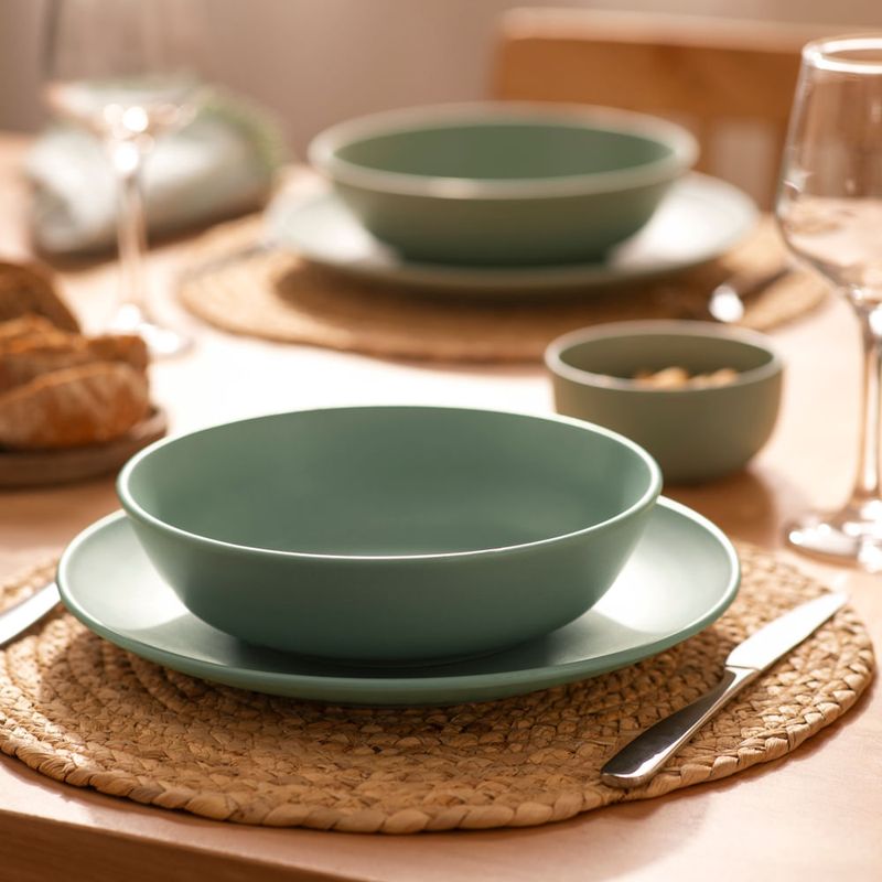 Plato de sopa de cerámica glaseada mate con diseño simple y moderno.