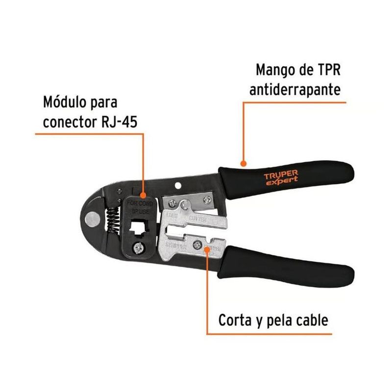 Pinza 8" ponchadora para cables RJ-45, 8 contactos, Truper