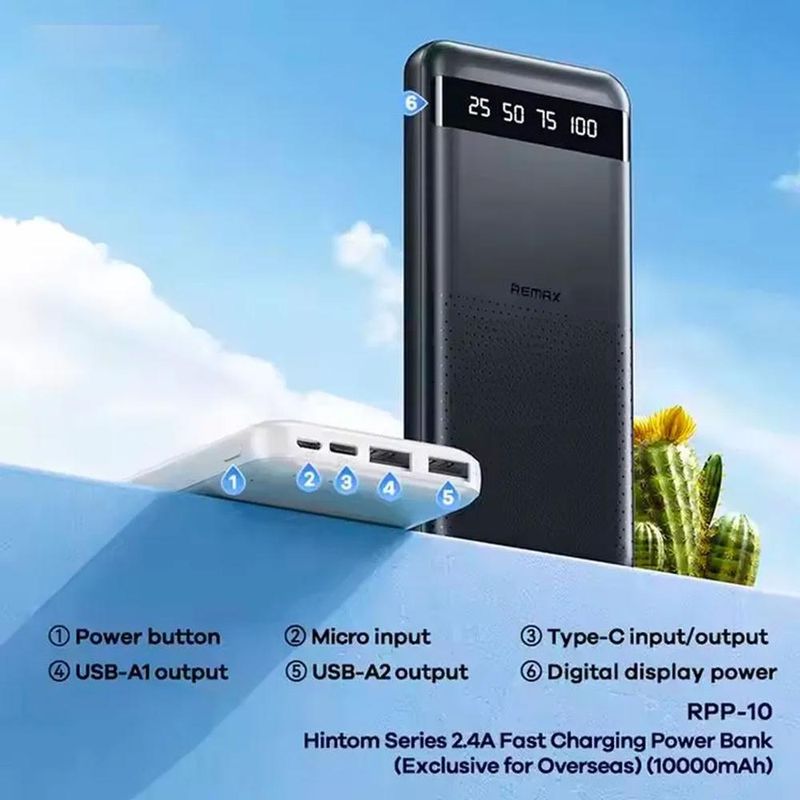 El REMAX RPP-10 es un cargador portátil de 10,000 mAh ideal para mantener tus dispositivos cargados durante todo el día. Gracias a su diseño compacto y elegante, puedes llevarlo fácilmente en el bolsillo o la mochila. Cuenta con dos salidas USB de hasta 2.4 A, lo que permite cargar dos dispositivos al mismo tiempo de forma rápida y segura. Su superficie con textura antideslizante y su construcción resistente lo convierten en una excelente opción para el uso diario.