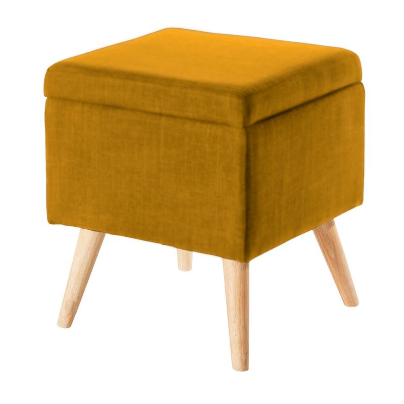 Puff color: Mostaza, Tapiz: Iker, relleno: Espuma zebra y estructura: Madera tornillo.