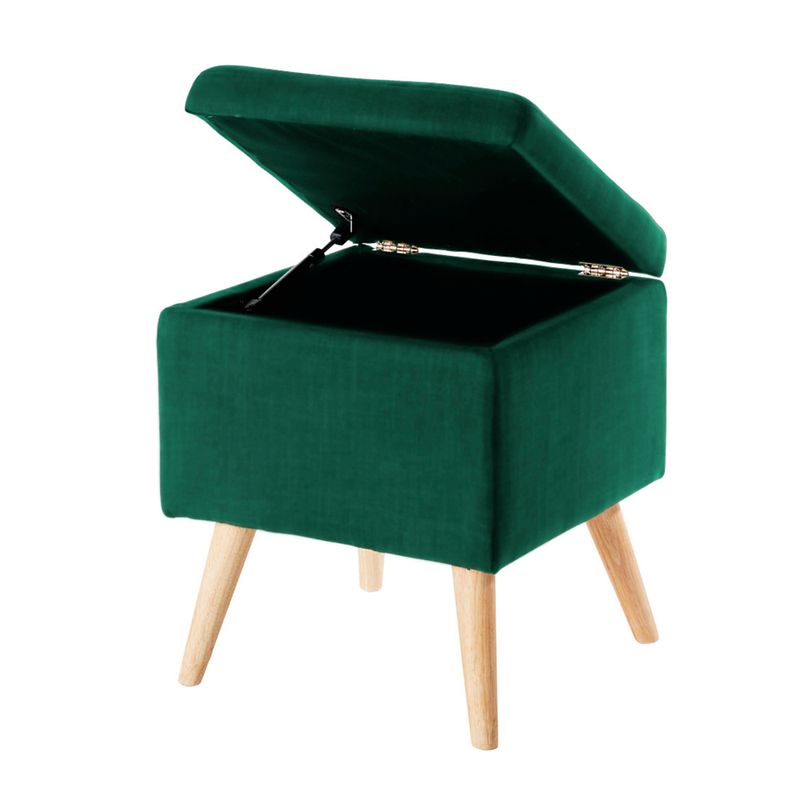 Puff color: Verde esmeralda, Tapiz: Iker, relleno: Espuma zebra y estructura: Madera tornillo.
