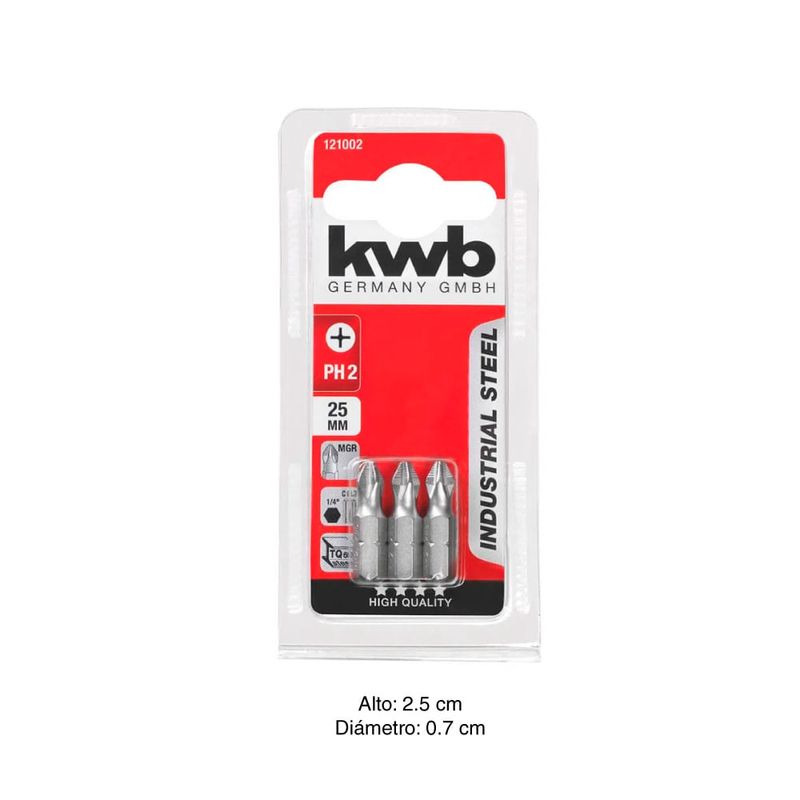 Las puntas Industrial Steel de kwb son aptas para cualquier atornillamiento estándar. Fabricada de acero TQ 60. Los Mega Grip Ribs evitan que la punta resbale del tornillo y prolongan la vida útil de la punta y del tornillo. vástago C 6.3 de 1/4". Superficie con acabado satinado.