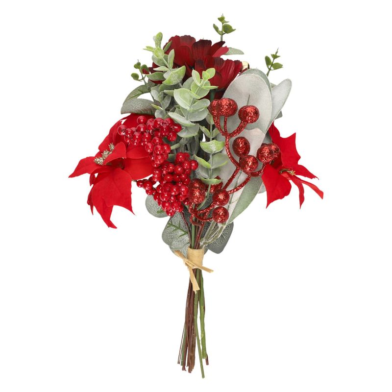 Ramo de flores artificiales de tela y plástico con temática de navidad