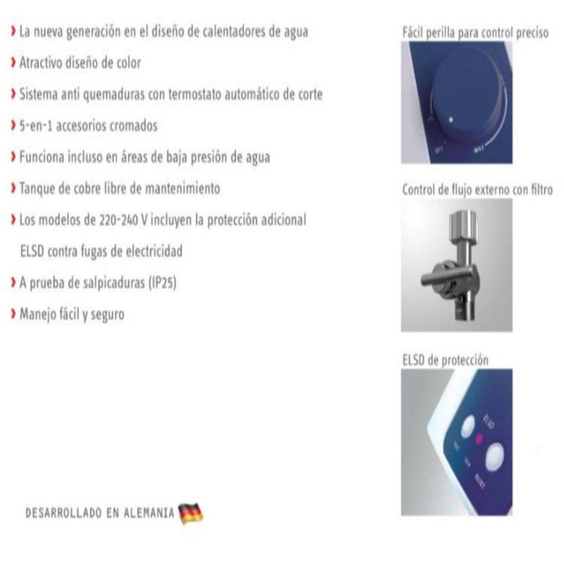 - Voltaje 220V incluyen la protección adicional ELSD contra fugas de electricidad