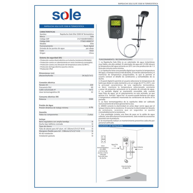 Obtén agua caliente de manera instantánea e ilimitada para tomar un baño tranquilo y prolongado sin variaciones de temperatura a pesar de presentar variaciones en la presión del agua. Cuenta con una pantalla digital que muestra la temperatura y el tiempo transcurrido del baño y 4 memorias de temperatura programables, permitiéndote conocer a detalle las condiciones y comodidades para tu ducha.