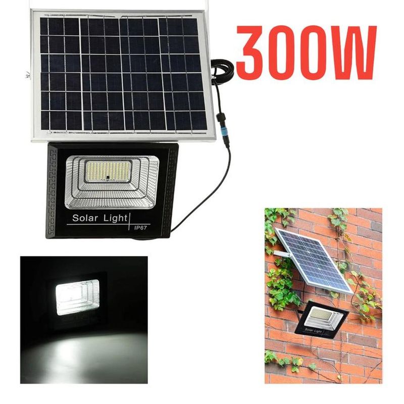 REFLECTOR LED 300W + PANEL SOLAR LUZ BLANCA + CONTROL REMOTO