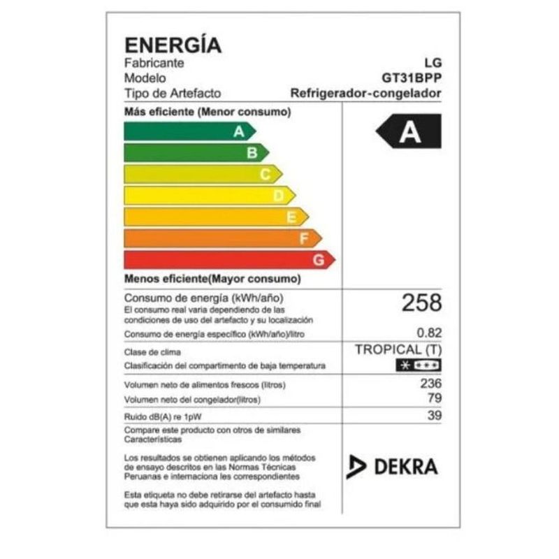 más rápido que un sistema de enfriamiento convencional. Reduce significativamente la brecha de temperatura entre la parte interior y el compartimento de la puerta. Smart Inverter Compressor trabaja de manera inteligente para una mejor eficiencia energética con máxima durabilidad porque LG produce el Compresor más innovador. Esto hace posible ofrecer una garantía de 10 años en el compresor. Cuenta con un funcionamiento silencioso que significa que tu cocina será más tranquila que una biblioteca.Puedes sacar y mover fácilmente la bandeja de hielo cuando necesites más espacio en el congelador.La luz LED te brinda mayor eficiencia energética y tiene un mayor tiempo de vida que la luz interna convencional.