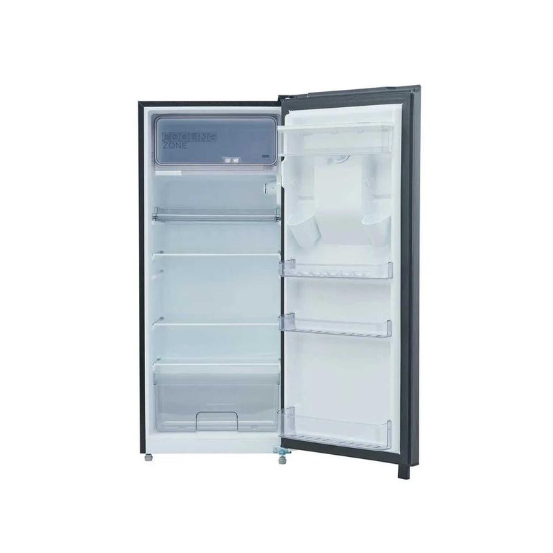 Incluye un anaquel para botellas de hasta 2 litros, dos anaqueles adicionales para otros contenedores, dos espacios para latas y una huevera con capacidad para 6 huevos.