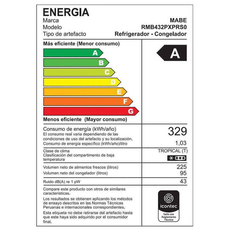 ElectrohogarRefrigeraciónRefrigeradorasRefrigeradora Rmb432pxprs0 Mabe 320 litros Inoxidable
