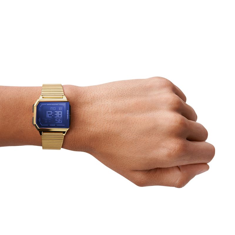 Reloj Diesel Chopped DZ1969 Digital Luz de Fondo Cronómetro Alarma Acero Inoxidable Dorado