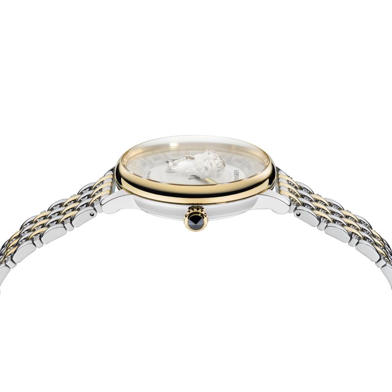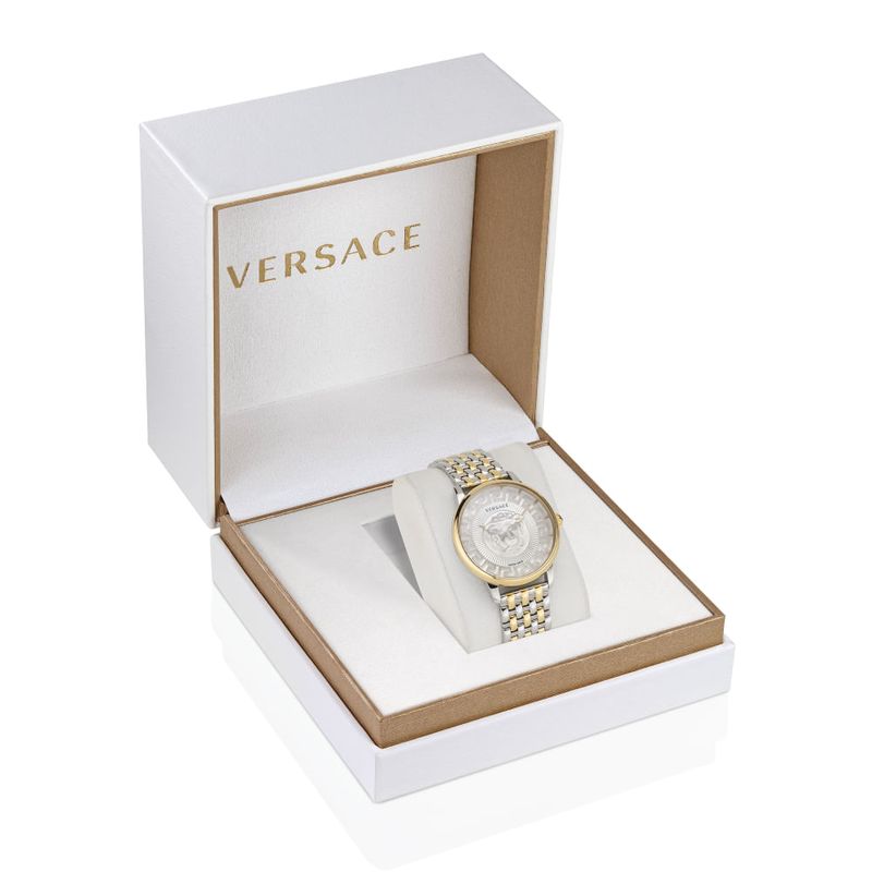 El reloj femenino revisita la Medusa flotante tridimensional en una versión transparente. La esfera está adornada con un motivo de Greca tonal en el anillo interior. ¡Encuentra este modelo y mucho más en Chronos! Distribuidores autorizados.