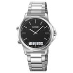 Reloj SKMEI 2120 Plateadocon fondo negro. Un sofisticado reloj digital que complementa tu look en toda ocasión. Sus características resaltantes como cronometro, fecha, alarma, timer y luz LED lo hacen aún más interesante. Su capacidad de configurar dos horas digitales y su correa dorada de acero le añaden elegancia. Sus 78.5 gramos de peso lo hacen un reloj ligero y su dial de 37.8mmx51.2mm se acoplan perfectamente a la muñeca y le permiten fácilmente ver la hora en todo momento. Su diseño 3atm resistente al agua lo hacen aún más versátil. ¡Adquiérelo ahora mismo!