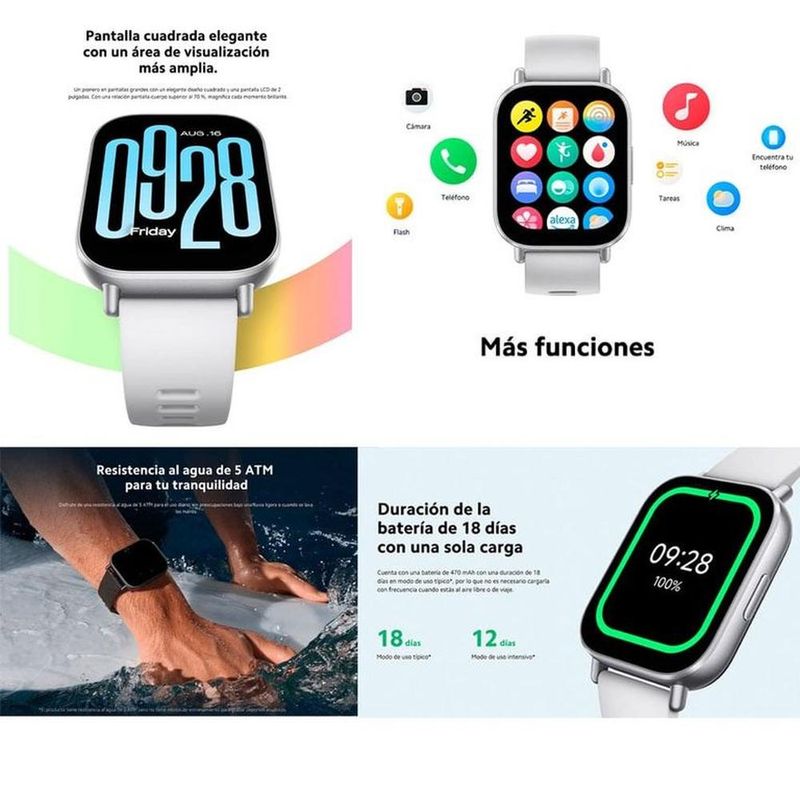 Uno de los aspectos más atractivos del Redmi Watch 5 Active es su pantalla LCD de 2 pulgadas, una pantalla a todo color que tiene un brillo ajustable, lo que te permite ver las notificaciones y la información con claridad tanto en interiores como en exteriores. Además, su diseño rectangular con esquinas redondeadas le da un aspecto moderno y elegante, ideal para cualquier ocasión, desde el gimnasio hasta el trabajo.