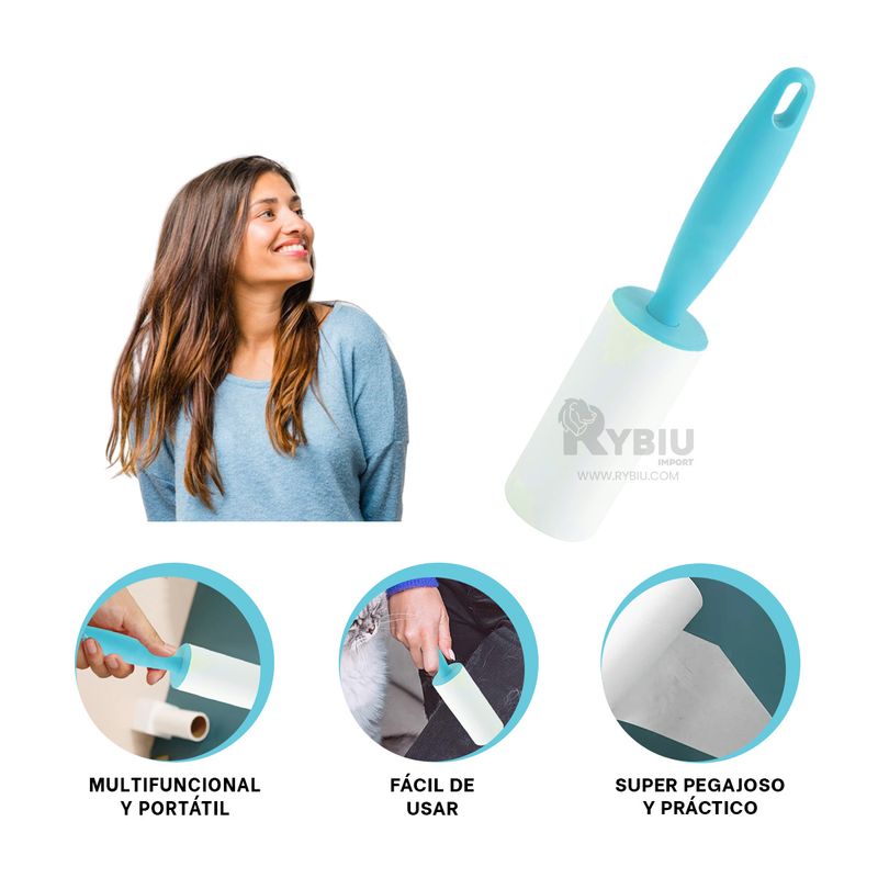 Dile adiós a la pelusa de tus prendas favoritas y adquiere nuestro rodillo quita pelusa multifuncional y portátil de color celeste. Es ideal para eliminar pelusas , pelos de tu mascota y otros residuos en la ropa , mantas , muebles , su diseño es práctico y portátil . Gracias a su diseño permite llevarlo a todos lados contigo sin ocupar espacio , es fácil de usar con solo pasar el rodillo por la superficie que desees limpiar es suficiente y verás como desaparecen . Su papel adhesivo es de alta calidad , pegajoso y práctico . Observaciones adicionales: las fotografías y descripción del producto son referenciales. Producto sujeto a stock de colores. Garantía: 7 días por daños de fábrica. El Modelo de los(el) regalo(s) está sujeto a disponibilidad de stock y colores.