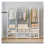 Ropero Armario Closet Perchero Organizador Ropa de 3 cuerpos, con separadores de tela en cada cuerpo, organiza tu ropa de forma elegante con este ropero armable, tiene 3 barras donde se puede colgar la ropa de forma ordenada, tiene 9 espacios en la parte inferior para colocar lo que uno quiera como ropa, zapatos, cajas, etc. Es muy resistente gracias a sus tubos de metal y las uniones o conectores de plástico. Medidas: largo 130cm , ancho 36cm y alto 170cm. Cada nivel tiene capacidad para sostener un peso de hasta 7k. Las barras para colgar soportan hasta 15k, lo que garantiza que tu ropa se mantenga estable. Montaje fácil: No requiere herramientas, simplemente conecta los tubos en los conectores de plástico y coloca la tela encada nivel y a los lados.
