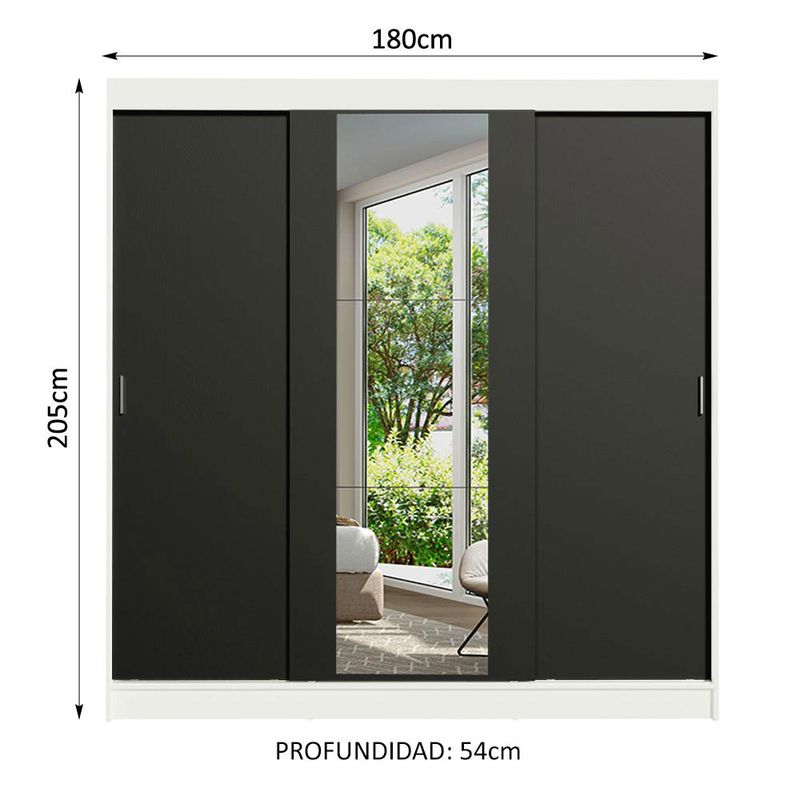 Medidas totales del armario: 205 cm alto x 180 cm ancho x 54 cm fondo.