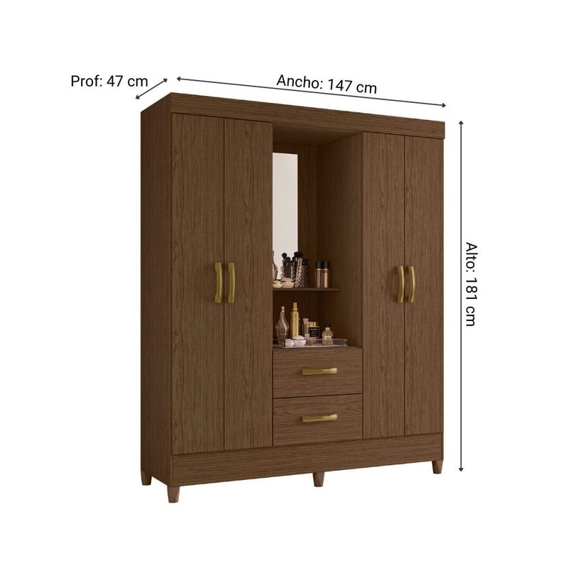 Ropero Mobi 4 Puertas 2 Cajones MDP Moka