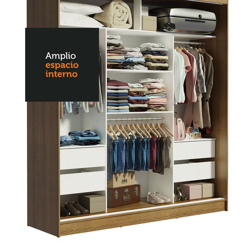 El ropero Reno es una opción con diseño moderno, excelente distribución interna y materiales de calidad para su hogar. Tiene tres puertas correderas con rieles de aluminio y deslizamiento suave, que optimizan el espacio. También cuenta con cuatro amplios cajones, dos barrales con espacio para ropa larga y un barral para ropa más corta. Además, dos puertas tienen espejos que amplían el ambiente y son muy prácticas en el uso diario. Tiene un acabado interior y exterior, fabricado con pintura de Poliéster de alta resistencia que dota al producto mayor calidad y durabilidad. - - - - - - - - - - - - - - - - - - - - - - - - - - - - - - - - - - - - - - - - - - - - - - - - LO QUE OBTIENES: Closet Madesa Reno 2 puertas con espejo Kit de tornillos para instalación Manual de armado e instalación ESPECIFICACIONES TÉCNICAS: Material: MDP Altura: 205 cm Largo: 180 cm Profundidad: 54 cm Características: Pintura Poliéster con 7 capas de protección El acabado es realizado con la pintura de 7 capas de poliéster exclusiva de Madesa. Este método es totalmente ecológico y además protege y conserva los muebles durante mucho más tiempo. El material del producto es MDP, a su vez, significa Tablero de partículas de densidad media (aglomerado de densidad media). Es un panel formado por pequeños fragmentos de madera con resina compactada a alta temperatura y presión. Toda la madera utilizada proviene de bosques renovables. Imágenes puramente ilustrativas. Dispositivos electrónicos y decoración no incluidos. Código del producto: 1095092E - Blanco / 10955Z2E - Marron Nota: Madesa no ofrece armado y colocación. El paquete incluye los accesorios y un manual explicativo con todos los pasos para la instalación.