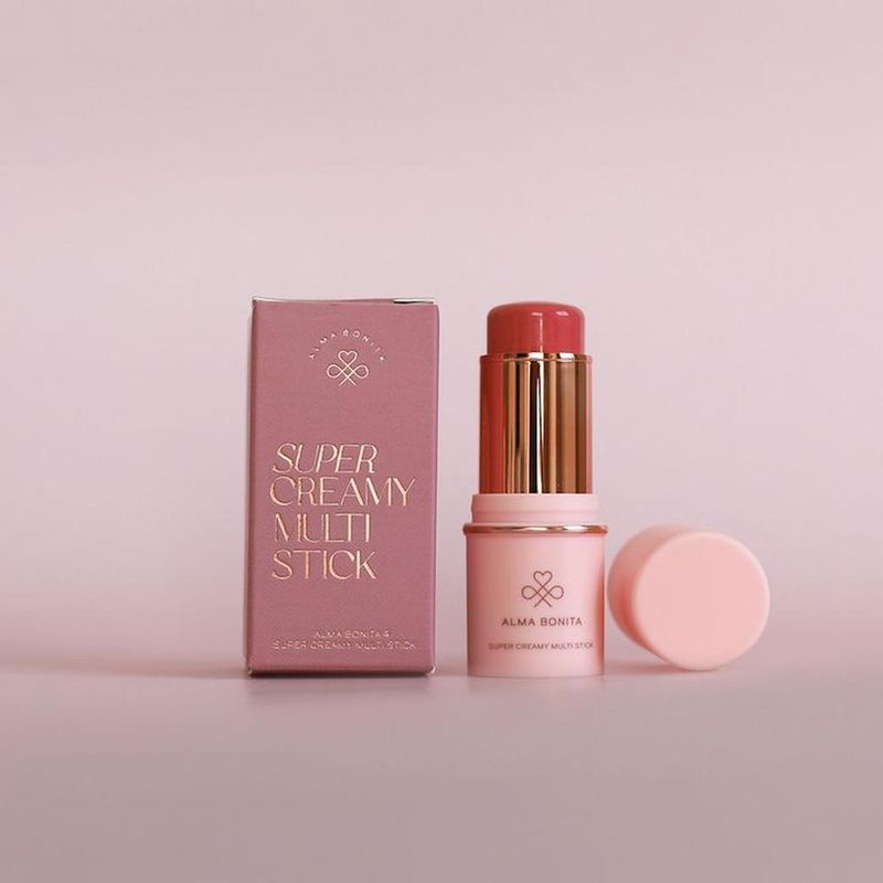 Modo de uso: Aplica el Super Creamy Multi Stick de Alma Bonita como rubor, labial y/o sombras, difumina con los dedos o brocha para un acabado natural