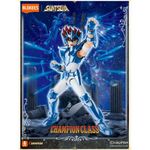 Este montaje sin herramientas incluye esculturas faciales y tocados intercambiables para capturar la gama completa de expresiones de Seiya, además de seis manos intercambiables y piezas exclusivas con efecto Pegasus Meteor Fist para recrear escenas de batalla icónicas.