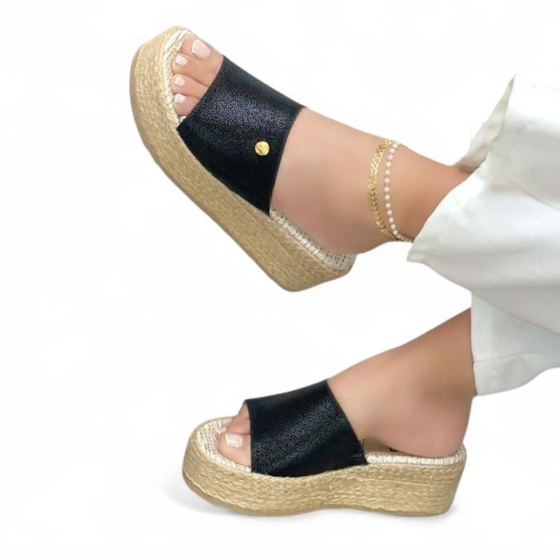 Sandalia Mujer Forrado Yute Plataforma 5 1022L-55 Color Negro