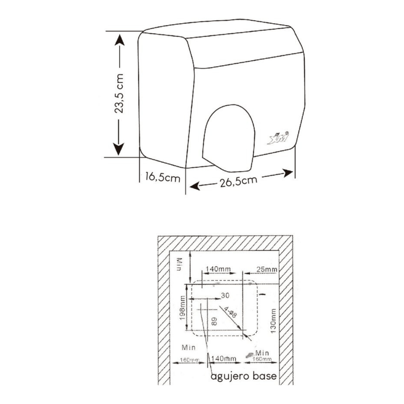 RECOMENDACIONES DE USO:La superficie en donde se fijará el secador debe de estar totalmente limpio, fijar en pared de baño. Usar un taladro para un mejor acabado en la instalación, fijar bien con sus tornillos y tarugos. Fijar las manos a una distancia de 15 cm. Encendido y apagado automatico.