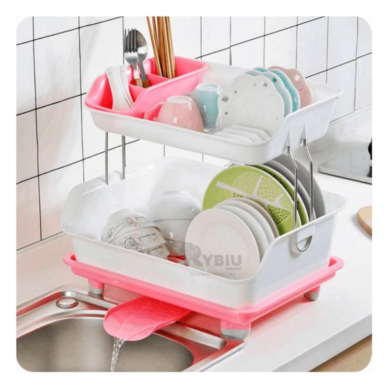 DecohogarMenaje de CocinaEscurridor de PlatosSecador Versatil de Plato 2N Rosado Y+Envoltorio de Regalo
