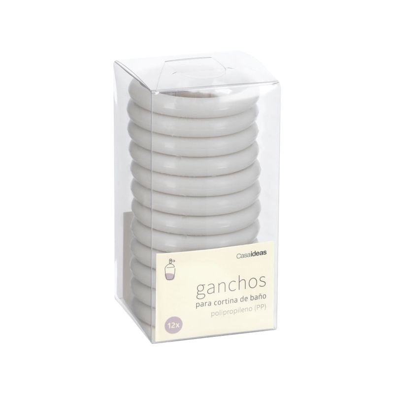 Set de ganchos de plástico PP para colgar la cortina de baño.