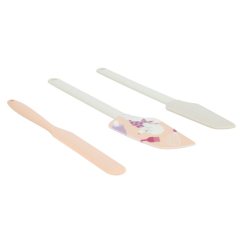 Set 3 espátulas de silicona con mango de plástico PP con diseño estampado.