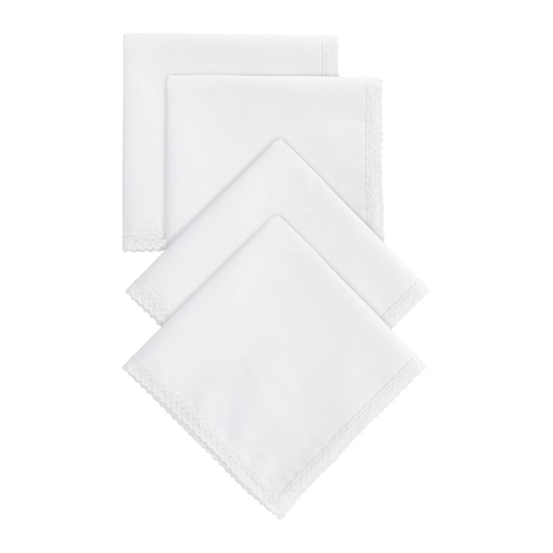 Set 4 servilletas de algodón con bordes y aplicación tejidos a crochet. Pertenece a la colección Altezzo.