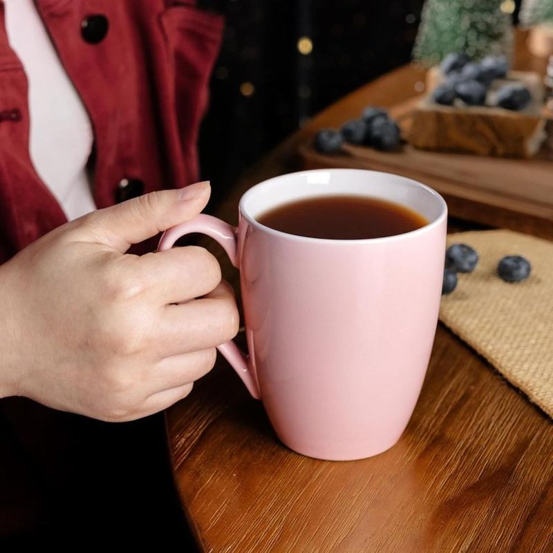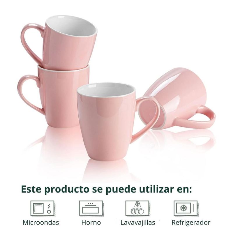 Set De 6 Tazas Cerámicas 500 Ml Elegantes Color Rosa