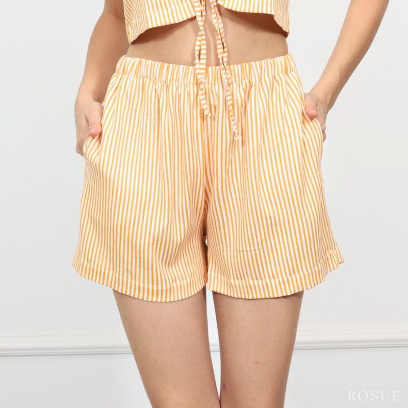 Short casual de lino con diseño de rayas y bolsillos funcionales. Prenda ligera y cómoda, ideal para días cálidos. Perfecto para combinar con blusas, camisetas o tops, creando un look fresco y versátil para cualquier ocasión casual.