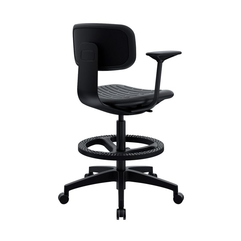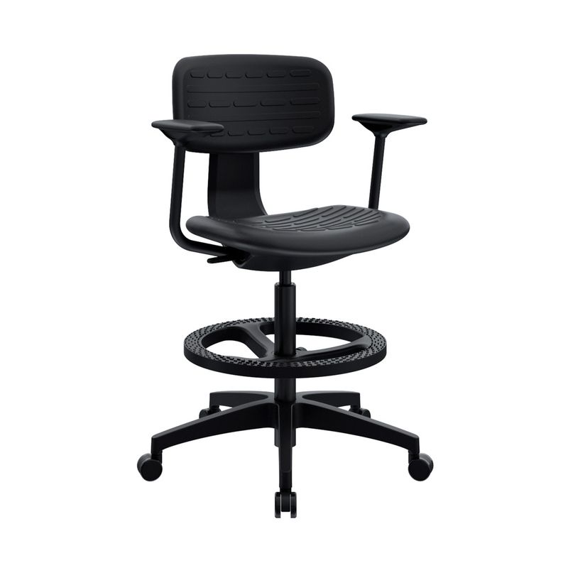 Asiento en polipropileno y asiento interno en poliuretano negro.