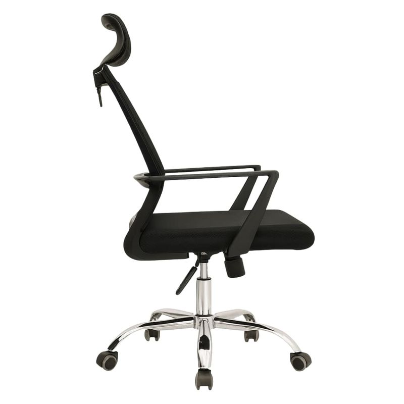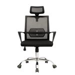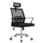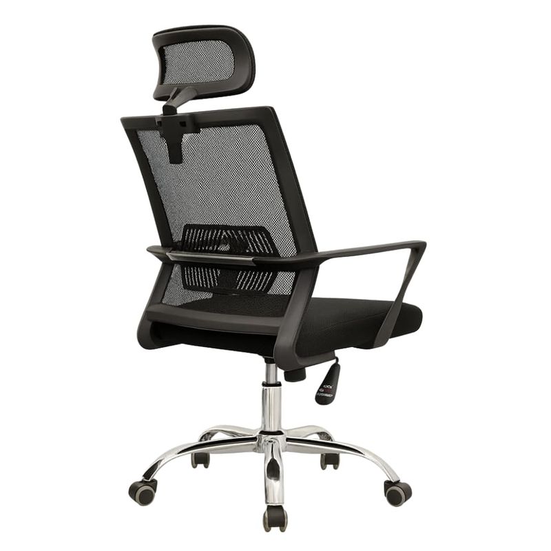Silla ergonómica con cabecero en malla regulable en altura, diseñada para brindar soporte cervical personalizado y mejorar la postura durante largas jornadas. Su respaldo en malla de poliéster altamente transpirable incorpora un apoyo lumbar fijo en polipropileno (PP), que favorece una correcta alineación de la zona baja de la espalda. Cuenta con brazos ergonómicos fijos en polipropileno (PP), resistentes y de fácil limpieza. El asiento, fabricado con espuma laminada de alta densidad y tapizado en tela textil duradera de acabado elegante, ofrece confort y resistencia. Incorpora un mecanismo basculante que permite una inclinación natural, con una posición de bloqueo para mayor estabilidad y perilla de tensión ajustable según el peso del usuario. Su base de nylon reforzado de 320 mm de diámetro garantiza estabilidad y soporte adecuado, mientras que las ruedas de nylon de 50 mm permiten un desplazamiento suave y silencioso sobre distintos tipos de piso.