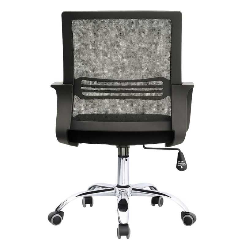 Silla ergonómica con espaldar en malla transpirable y apoyo lumbar fijo en polipropileno (PP), diseñada para brindar comodidad y soporte ergonómico durante largas jornadas de trabajo. Cuenta con brazos fijos en polipropileno (PP) de diseño práctico y duradero, ideales para uso continuo en entornos de oficina. El asiento acolchado, con espuma laminada de densidad media y tapizado en textil resistente, ofrece confort prolongado y una superficie de apoyo firme. Incorpora un mecanismo basculante con una posición de bloqueo y perilla de tensión ajustable, que permite adaptar el movimiento del respaldo según la preferencia del usuario. Su base robusta de nylon de 320 mm garantiza estabilidad y resistencia, mientras que las ruedas de nylon de 50 mm aseguran un desplazamiento suave y silencioso sobre pisos duros o alfombrados.