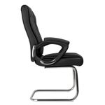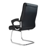 Silla ergonómica con espaldar en cuero sintético, de acabado elegante, fácil de mantener y resistente al desgaste, brazos en polipropileno con PAD en tapizado textil, brindando mayor comodidad y soporte ergonómico para los brazos, asiento en cuero sintético, acolchado con espuma de alta densidad que proporciona confort durante largas jornadas, estructura cromada tipo trineo, que ofrece gran estabilidad, un diseño moderno y profesional, ideal para oficinas, salas de reuniones o áreas de recepción, diseño funcional y estilizado que combina estética y confort, adaptándose a diversos entornos laborales o comerciales, superficie de fácil limpieza y materiales duraderos para un uso prolongado y bajo mantenimiento.